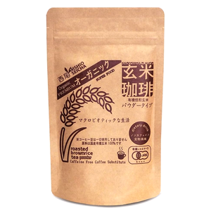 九州産 農薬・化学肥料不使用 有機栽培玄米をじっくり低温で焙煎し、粉末にした玄米珈琲(玄米コーヒー)です。