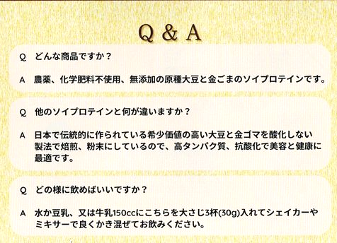 熊本県産農薬肥料不使用自然栽培・在来種の八天狗大豆と宮崎県産金ゴマのみで仕上げたこだわりの無農薬ソイプロテインです。