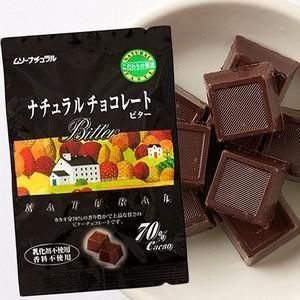 農薬や化学肥料を使わず有機栽培された原料を、乳化剤や植物性油脂を使わずココアバターを練り上げて、一口サイズに仕上げたナチュラル・ビターチョコレートです。カカオ含有量70%